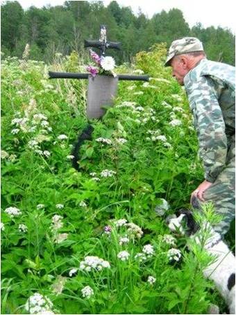 «В 73-м году мы попали в урочище Тортолово. Лес неожиданно кончился и открылась живописная долина, прорезанная извилистой речкой. Вся местность, особенно левый берег реки, была изрыта траншеями, прямоугольными ямами обвалившихся блиндажей и бомбовыми воронками, поросшими купами деревьев. Всю эту печальную красоту пересекал проселок, ведущий к воссозданному Двору охраны; за дорогой следили, топкие места мостили железными ящиками от немецких мин — проселком пользовались охотники и пастухи, гонявшие в урочище апраксинское стадо. Единственным напоминанием о деревне был деревянный крест,крашенный голубой краской. К нему была прибита металлическая дощечка с надписью: «Дергачева Матрена Ивановна 1901 г.Дети — Лилия, Иван 1930 г.; Зоя — 1933 г.; Татьяна — 1935; Михаил — 1937; Семен — 1939 г. Убиты немцами за помощь партизанам». Жители д. Путилово рассказали, что трагедия произошла в сентябре 1941 г., а после войны с фронта вернулся глава семьи,который и поставил крест на руинах своего дома…»
