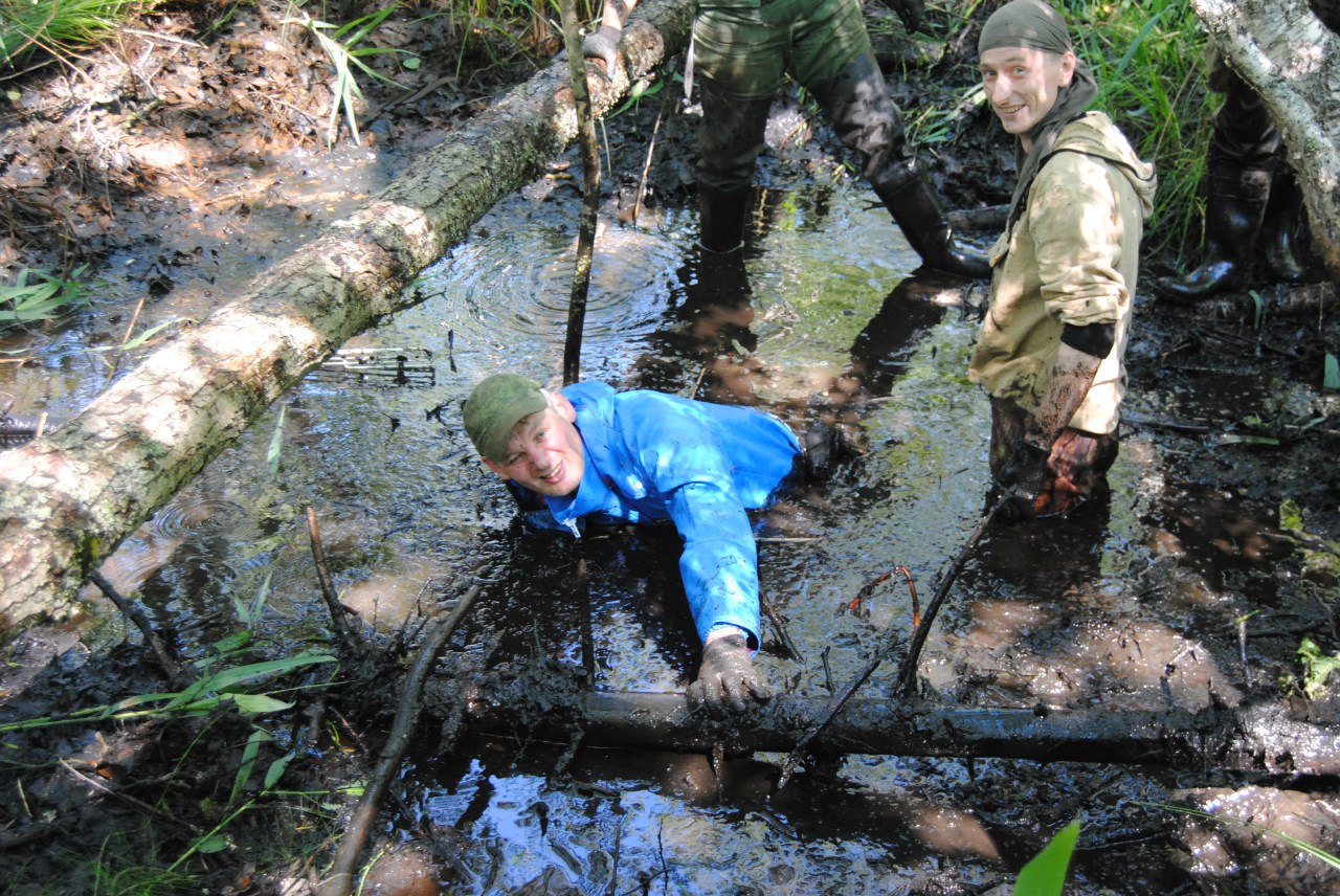Поиск, а особенно подъем погибших военнослужащих РККА, производился в исключительно сложных условиях. Даже нам, имеющим немалый опыт работы в болотах Кировского района, впервые пришлось столкнуться с такой неординарной ситуацией. Положение усугублялось еще и тем, что кислые почвы и время буквально уничтожили «железо»: оружие, боеприпасы, другие металлические предметы, не говоря уже о костных останках, которые сохранились фрагментарно. Неординарность поиска заключалась в том, что погибший военнослужащий имел все положенное по штату вооружение и снаряжение, а самого его не было. Костные скелеты сохранились фрагментарно – от погибших солдат сохранились в лучшем случае лишь 2-3 кости скелета. Несмотря на это, поиск было решено продолжать. Подъем обнаруженных бойцов и командиров Красной Армии производился из воды и болотной жижи. Глубина залегания останков составляла от 5 до 60 см. Останки солдат пришлось вырубать из многочисленных корней деревьев, так как они сохранились там, где были приподняты корнями над кислой почвой. Для подъема каждого солдата пришлось создавать группы численностью 2-4 человека, каждый из которых выполнял определенную задачу.